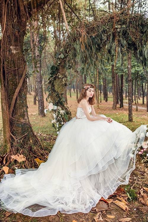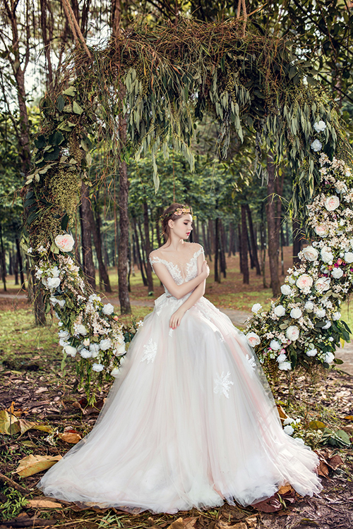 Vẻ đẹp nhẹ nhàng của tân nương sẽ được tôn lên bằng trang phục váy bồng xòe thướt tha.