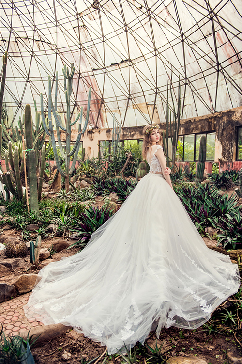 Thiết kế váy cưới dạng rời (crop - top) dành cho cô dâu cá tính, yêu thích sự phá cách. Dáng váy này giúp tôn lên vòng eo con kiến và vòng một tròn đầy mà vẫn kín đáo, thanh lịch, trẻ trung.