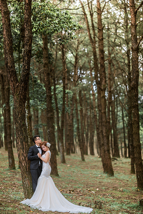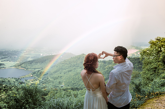 “Cả hai đều thích cỏ cây, hoa lá, hơn nữa, bọn mình ở Hải Phòng, gần biển, nên muốn lên núi chụp ảnh cho khác lạ”, chú rể Hồng Quân chia sẻ về quyết định lựa chọn địa điểm thực hiện bộ ảnh cưới.
