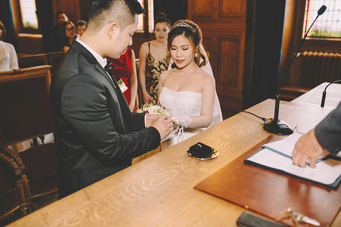 Ngày cưới của Yến và Thắng bắt đầu với lễ đăng ký kết hôn ở toà thị chính Paris rồi tiếp nối với tiệc mừng tưng bừng bên bạn bè, đồng nghiệp thân thiết.