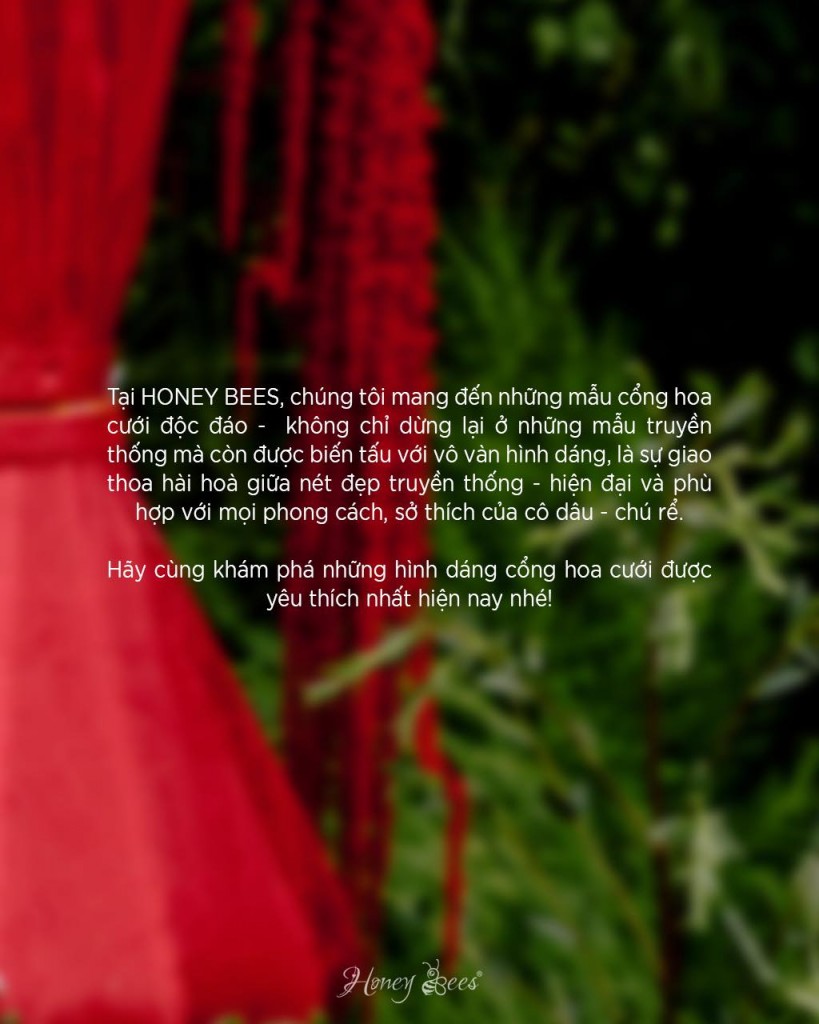 Nắm bắt được xu hướng thị trường cưới cũng như thị hiếu của khách hàng, Honey Bees cho ra mắt những thiết kế cổng hoa vừa mang nét đẹp hiện đại, vừa đa dạng về hình dáng lẫn màu sắc để các cặp đôi dễ dàng có sự lựa chọn phù hợp cho lễ cưới của mình.