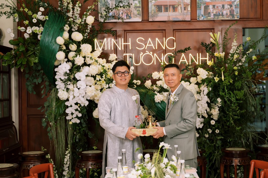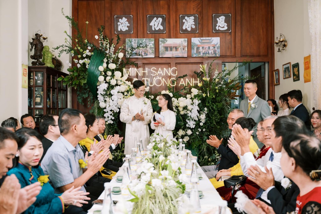 Chỉ với cách trang trí tối giản như thế nhưng buổi Lễ Tân Hôn của Sang & Tường Anh đã khiến cho khách mời không khỏi trầm trồ bởi một không gian gia tiên vừa ý nghĩa, lại vừa phản ánh được cá tính của cặp đôi.