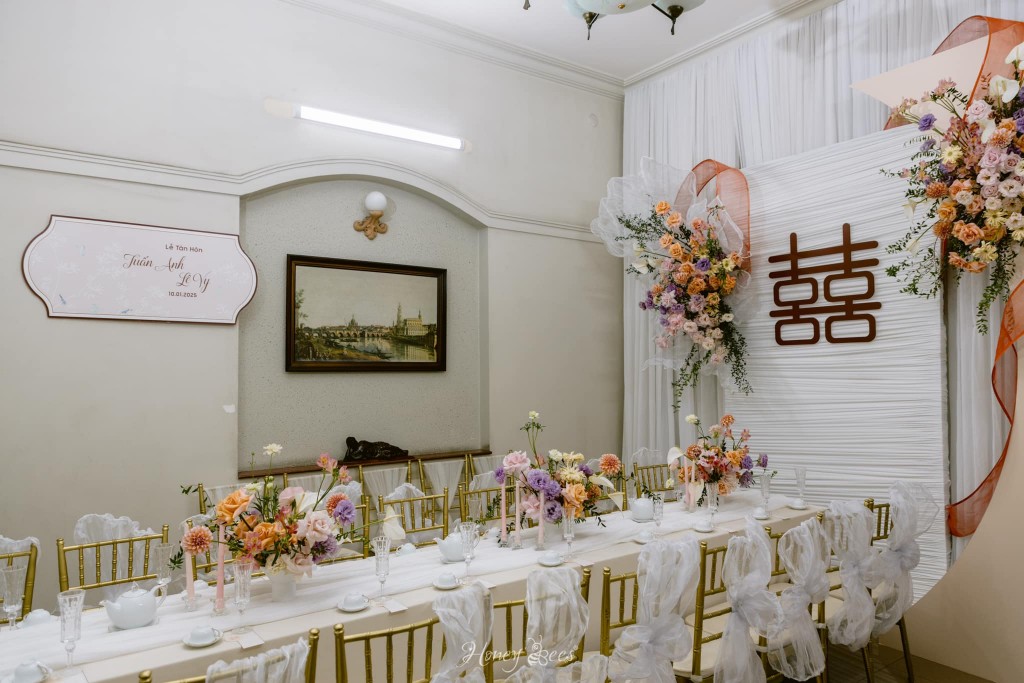 Flower Flow với một phiên bản màu sắc hơn ngay tại buổi Lễ Tân Hôn của Tuấn Anh & Lê Vy. Vì buổi tiệc được tổ chức vào đầu năm mới, gia đình và cặp đôi cũng như HONEY BEES mong muốn mang đến nhiều hương sắc tươi mới, rực rỡ hơn như đón chào một khởi đầu 2025 thật thành công và tràn ngập hạnh phúc.