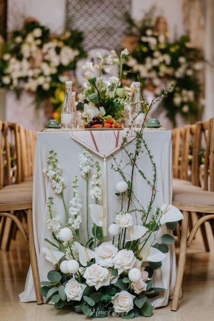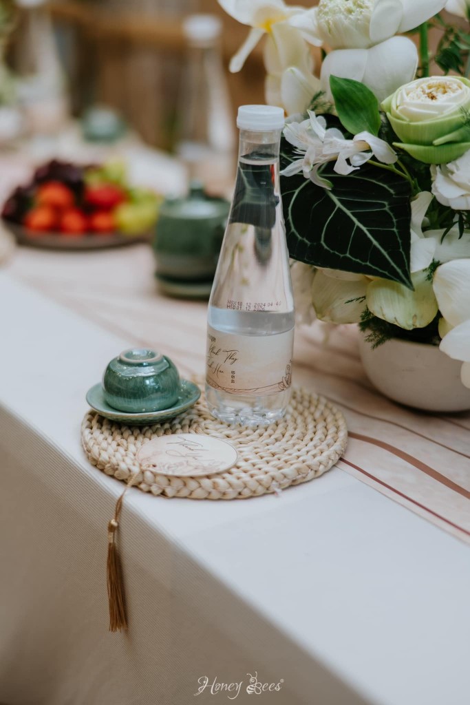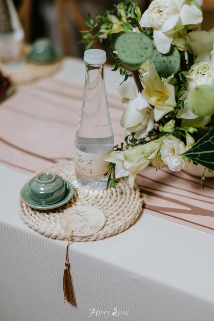 Để tạo nên sự khác biệt nhất định, HONEY BEES đã thêm thắt sự hoài cổ của chất liệu gỗ, tre và hoạ tiết indochine với mong muốn tạo nên những giá trị thẩm mỹ cho một buổi Lễ Gia Tiên, lại vừa mang đậm âm hưởng của nền văn hoá Á Đông như đúng mong muốn của Thuỵ và gia đình.