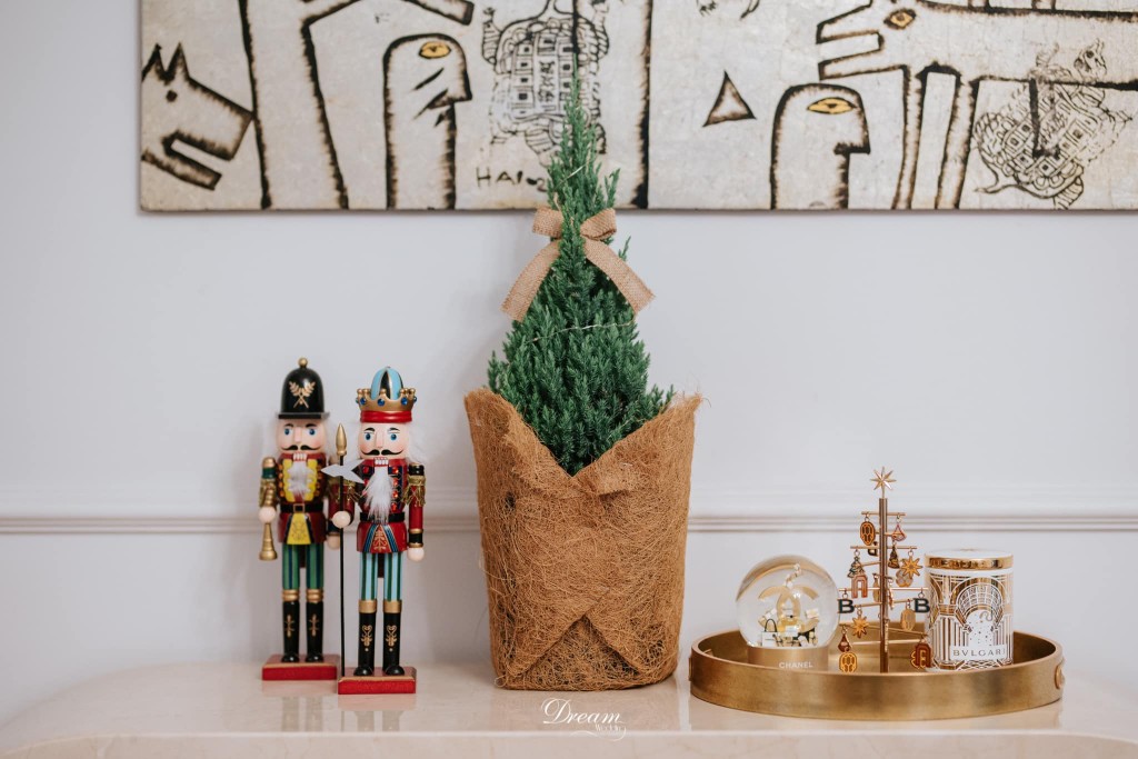 Với không gian sang trọng của khu biệt thự nằm tách lập sự huyên náo của Sài Gòn, để tạo nên chiếc “vibe” theo mong muốn của gia đình, concept lần này thì chúng mình không sử dụng những gam màu quen thuộc của mùa giáng sinh như đỏ và xanh mà thay vào đó, sắc màu mà tụi mình lựa chọn là vàng đồng, xám, xanh … để phù hợp hơn với không gian và đồng thời vừa tôn lên được những ngóc ngách xinh xắn của ngôi nhà, giúp trở nên ấm áp và bắt mắt hơn trong mùa lễ giáng sinh này.