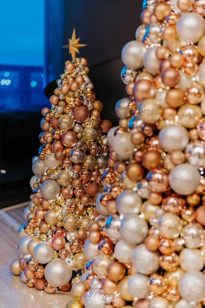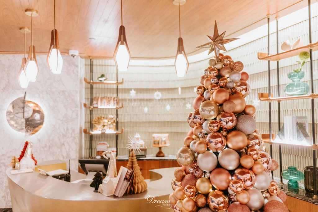 Được trang trí theo phong cách tinh tế cùng sự khác biệt so với các khách sạn khác, Dream Wedding đã tạo dựng nên cây thông từ những quả châu nhỏ xinh, giúp không gian trở nên ấm áp và bắt mắt hơn, mang đến cho quý khách hàng cũng như nhân viên của Hilton Saigon có thật nhiều kỷ niệm khó quên trong không gian lung linh của lễ hội Giáng sinh này.