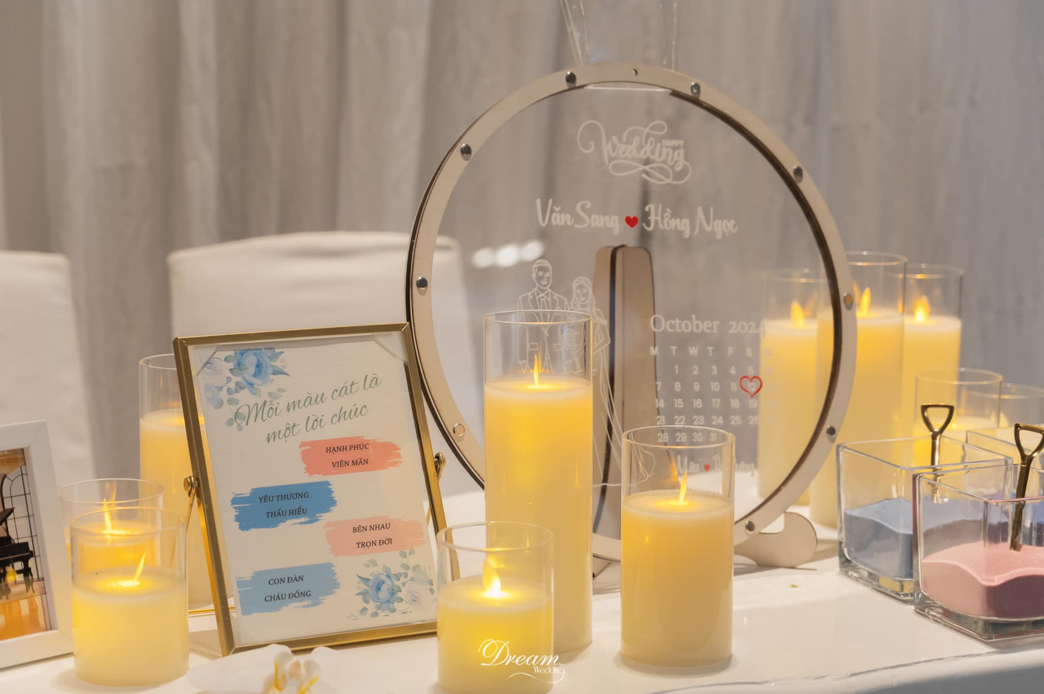 Sau thời gian dài bên nhau, Ngọc & Sang đã quyết định lựa chọn Dream Wedding cùng đồng hành để viết tiếp câu chuyện tình yêu của mình. Ngay từ khi bước vào không gian sảnh cưới, khách mời như lạc vào thế giới hoàn toàn mới với hệ treo trần lung linh và hoành tráng, đã mang đến cho các vị khách quý ngày hôm ấy những trải nghiệm vô cùng thú vị và mới mẻ về mặt thị giác.