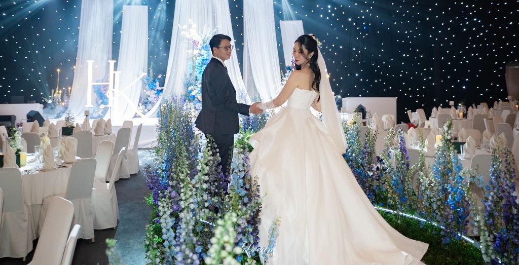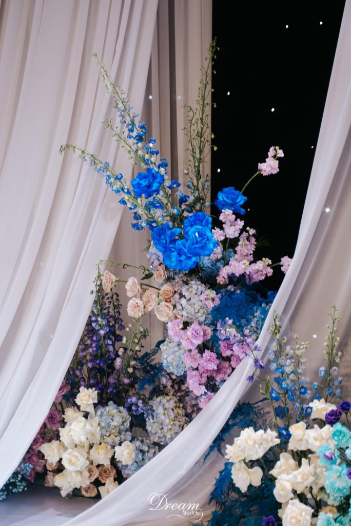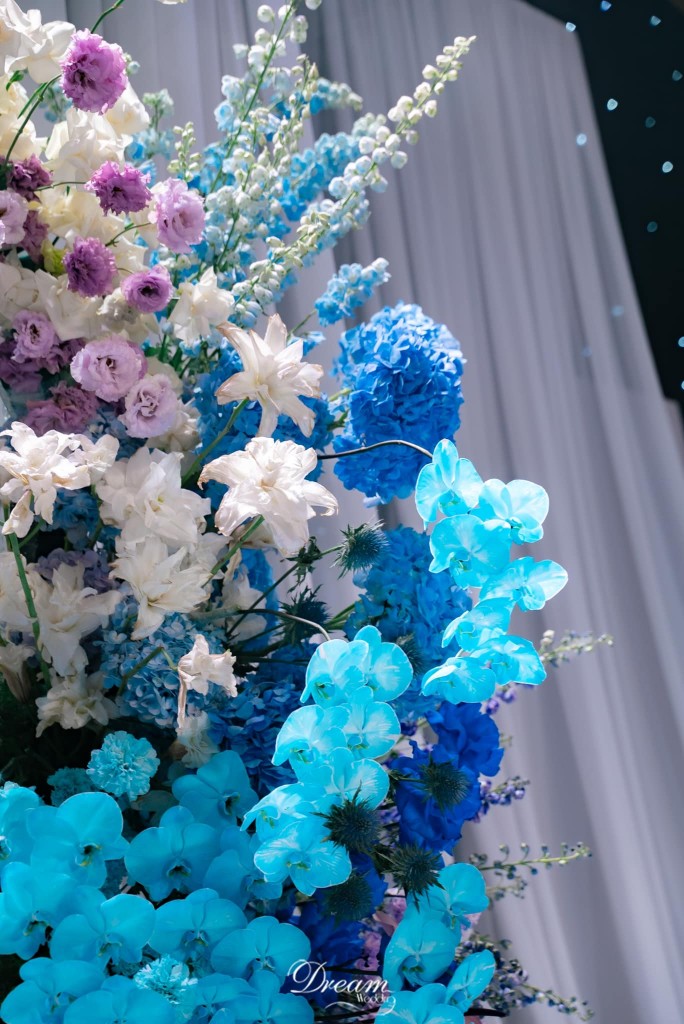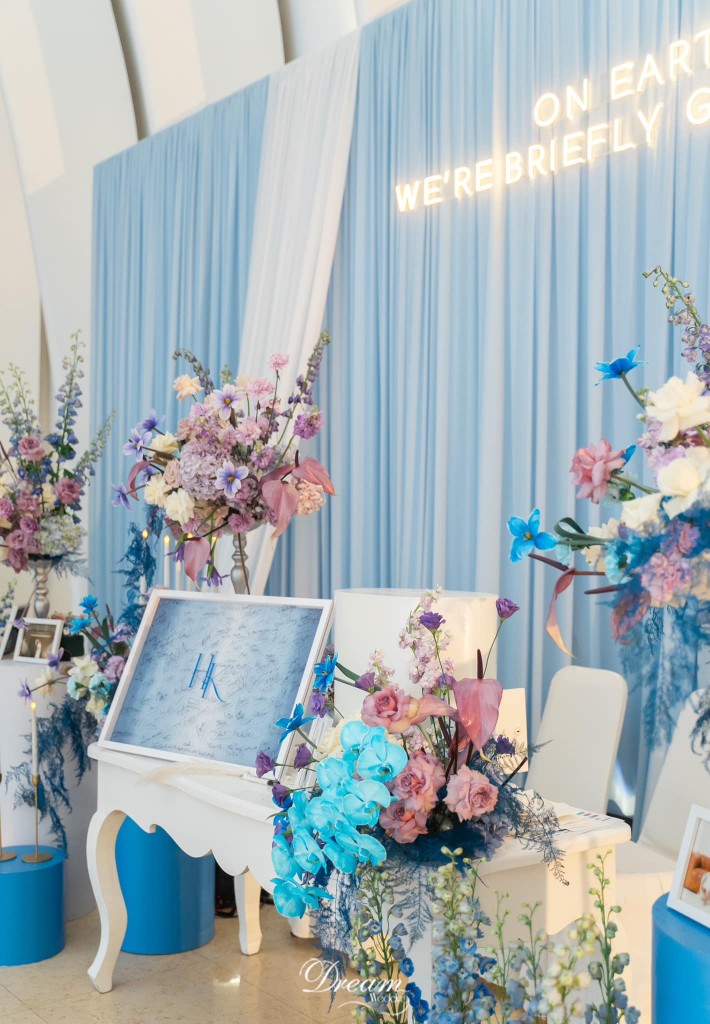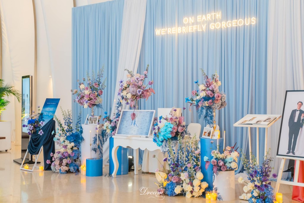 Không còn là sự phối màu quá đỗi quen thuộc, Ethereal Blue Delphinium là concept đặc biệt được cộng hưởng của đầy đủ các yếu tố giác quan và cảm xúc như đang thể hiện chính câu chuyện tình yêu của Hà & Kim. Bên cạnh sự sáng tạo, ghi dấu trong lòng tụi mình còn là những tình cảm chân thành và sự thấu hiểu lẫn nhau - Đó là những lời chia sẻ từ tận đáy lòng của hai bạn dành cho nhau, là những cái ôm chặt, nụ cười hạnh phúc và cả những giọt nước mắt vì xúc động.