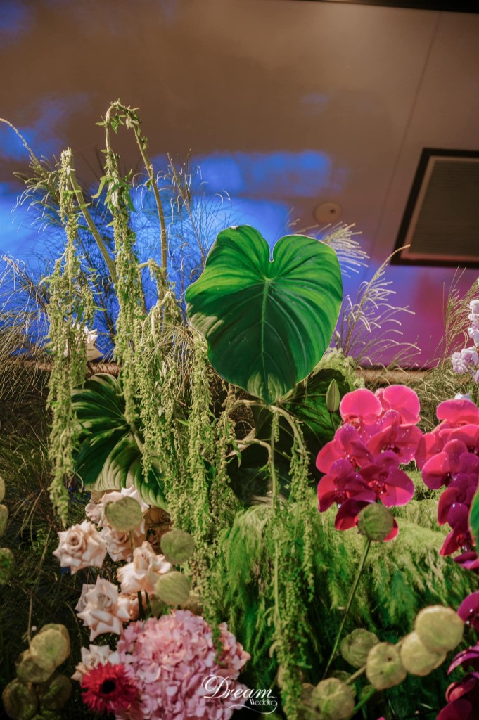 Hội tụ những yếu tố mang tính đột phá cùng lối trang trí độc đáo của mình, Dream Wedding đã khéo léo và tỉ mỉ lựa chọn từng loài hoa, từng chiếc lá và từng món phụ kiện với mong muốn tạo nên một buổi tiệc thật bắt mắt và hoàn hảo nhất có thể. Khu vực sân khấu trở nên ấn tượng hơn với ý tưởng khá mới mẻ, đó những nhành hoa đang nở rộ được đan xen tinh tế với nhau cùng chút sắc xanh của cỏ lá đã trở thành điểm nhấn thu hút khách mời tận hưởng trọn vẹn buổi tiệc sinh nhật này.