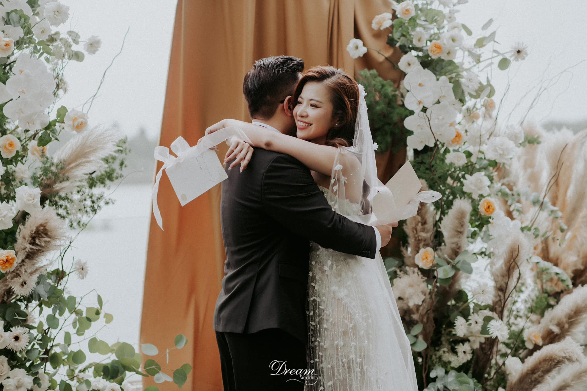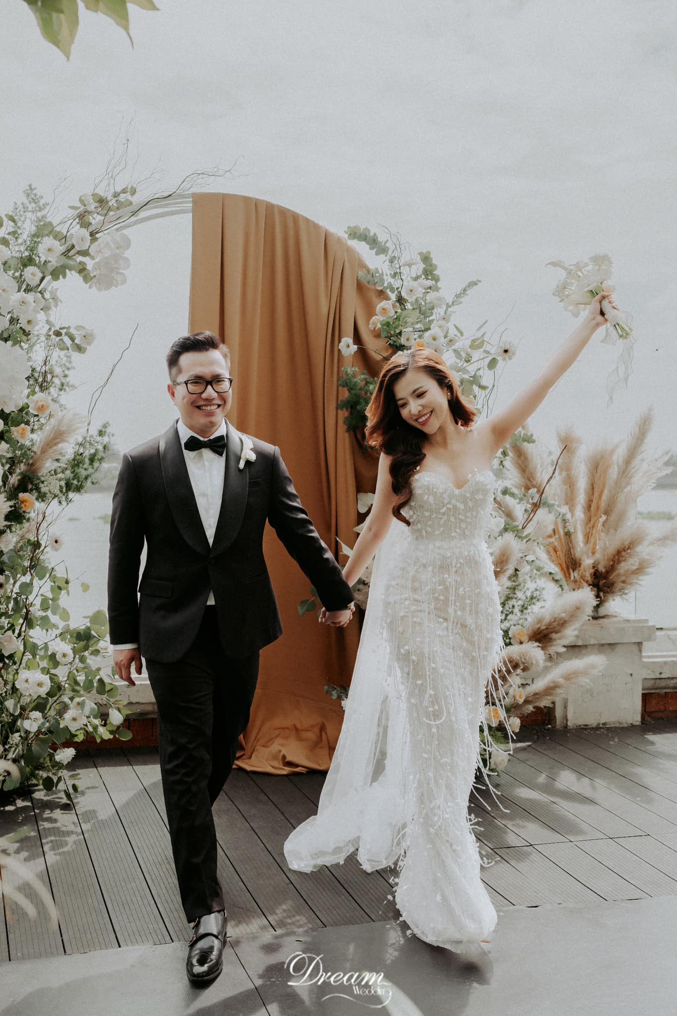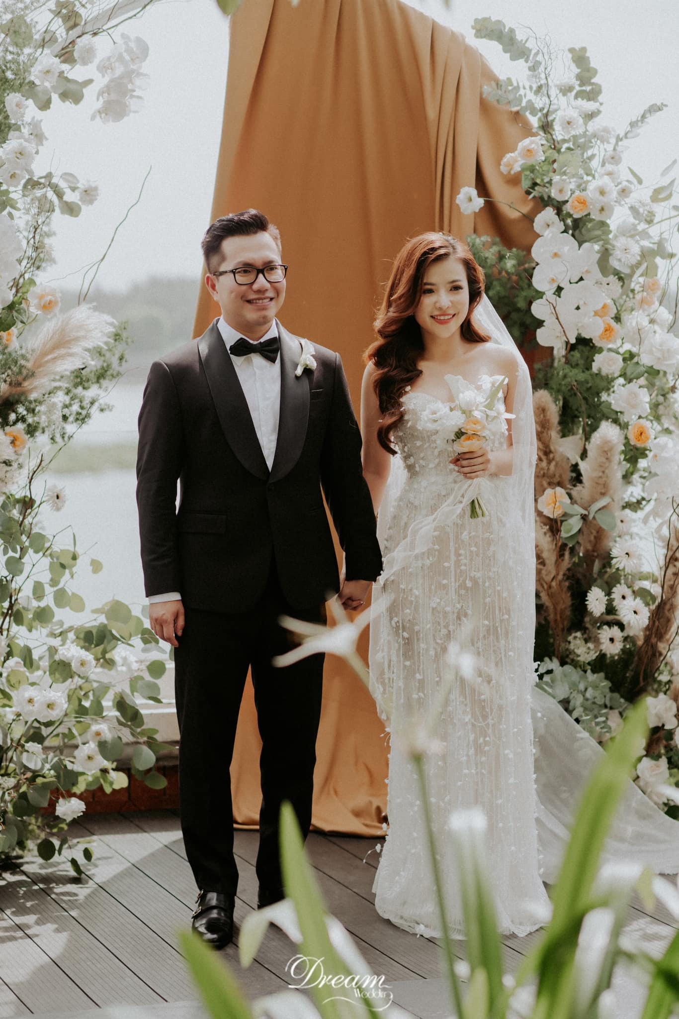 Lắng nghe sở thích từ Thanh Tâm, Concept được thiết kế tinh tế khi hòa trộn tinh tế giữa hoa cỏ lau và các loài hoa nhập khẩu khác, điều này không chỉ mang đến sự mới lạ trong việc lựa chọn chất liệu mà còn thể hiện được gu thẩm mỹ của cặp đôi. Bên cạnh đó, Dream Wedding còn điểm tô bằng cách dùng tấm vải voan màu nâu để tái hiện lại một buổi Lễ Vow dành riêng cho cặp đôi Duy & Tâm. Chính ngay lúc cả hai xuất hiện trước chiếc cổng hoa ấy, một “Happy Ending” dần hiện ra rõ nét - Hình ảnh Tâm khoác lên người chiếc váy cưới kiêu sa và quyến rũ, phô diễn những nét đẹp bay bổng tựa như những cánh hoa. Còn về phía Duy, người đàn ông lịch lãm nhưng vô cùng ấm áp trong bộ suit đen.