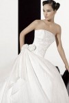 Chiếc váy cưới quây ngực đơn giản của Rosa clara khéo léo khoe đôi vai trần thon thả, gợi cảm đáng yêu của cô dâu hiện...