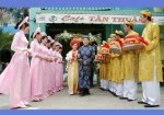 Họ nhà gái mời nhà trai vào nhà, nhà trai cho đặt đồ lễ lên bàn thờ, chú rễ phụ hay những người phụ bưng lễ vật...