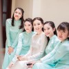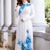 Bên cạnh sắc đỏ truyền thống, áo dài màu trắng được các cô dâu lựa chọn nhiều trong ngày cưới. Bộ áo dài lụa trắng mang vẻ đẹp thanh lịch, trang nhã, tôn lên đường cong cơ thể.