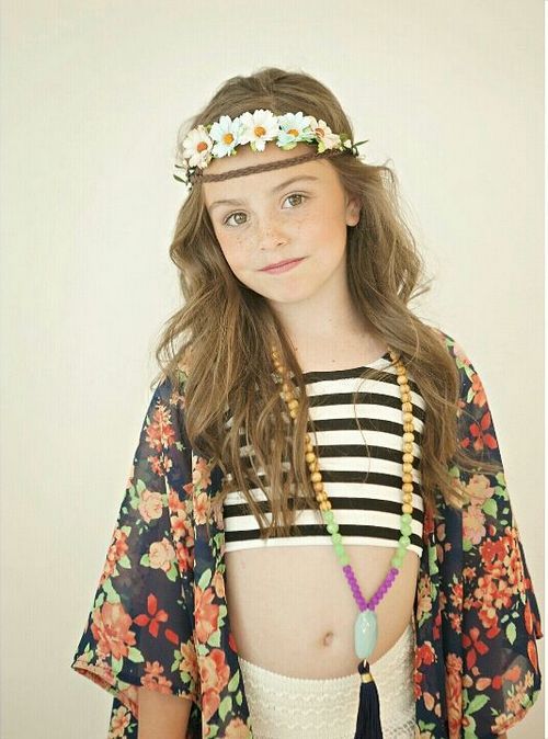 Tóc của nhiều bé gái thường không quá dài, vì vậy bạn chỉ cần uốn lọn xoăn đơn giản và đội lên đầu bé một chiếc vương miện hoa là đủ.