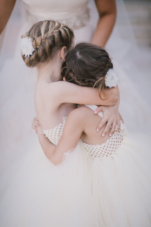 Tóc xoăn với vương miện hoa, tóc tết lệch hay tóc búi phồng... sẽ làm tăng lên vẻ đáng yêu của các phù dâu nhí.