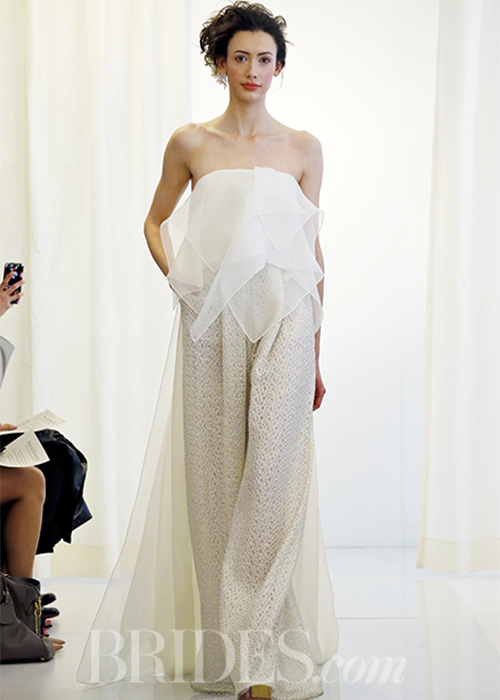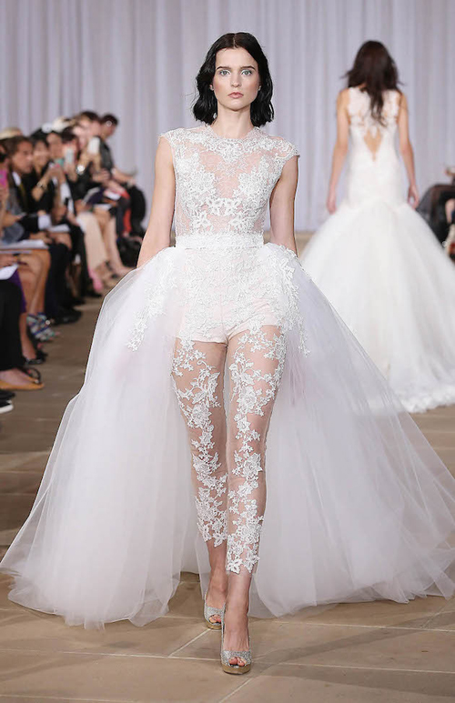Jumpsuit là kiểu trang phục áo liền quần, mang đến phong cách trẻ trung, năng động cho người mặc. Các nhà thiết kế trên thế giới đã "bạo tay" đưa style thời trang ứng dụng hằng ngày này vào những bộ đồ cưới lộng lẫy cho cô dâu.