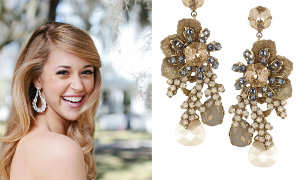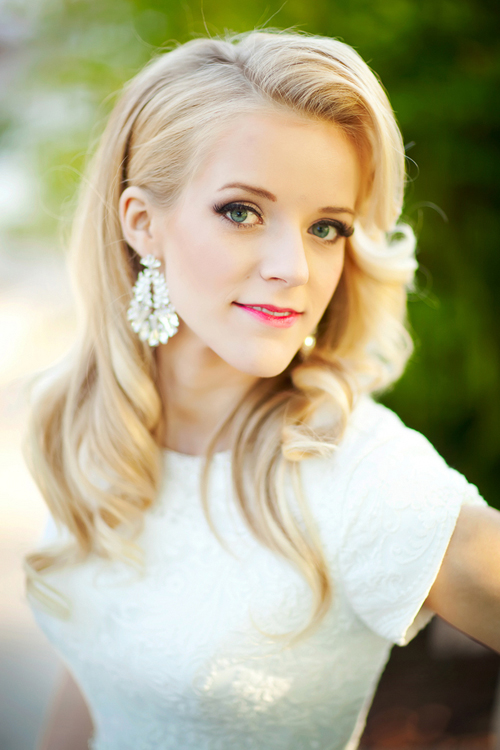 Khuyên tai to bản là phụ kiện tuyệt vời để thể hiện phong cách của cô dâu cùng kiểu tóc và bộ váy cưới.