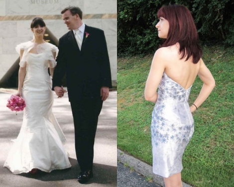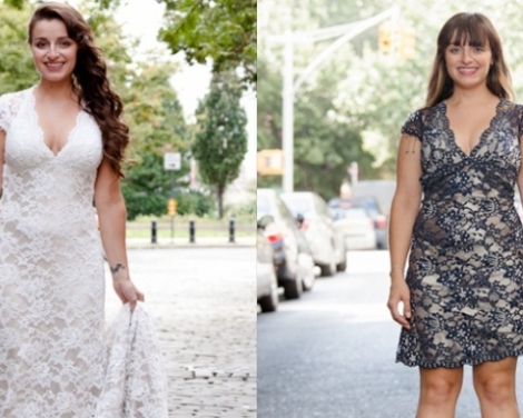 Với phương pháp nhuộm vải tại nhà, bộ váy cưới màu trắng tinh khôi đã biến thành chiếc đầm dự tiệc màu xám tro gợi cảm.
