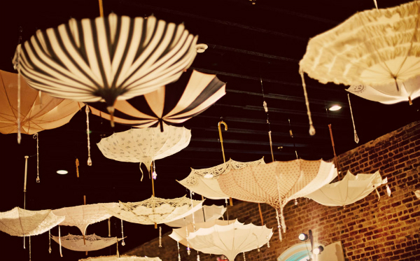 Nếu sử dụng ô trang trí, bạn nên chọn những chiếc ô có gam màu đồng điệu với gam màu chủ đạo của đám cưới.