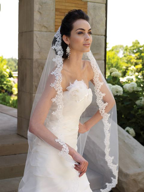 Lớp voan mỏng manh đính ren tinh tế làm đẹp cho cô dâu trong ngày cưới.