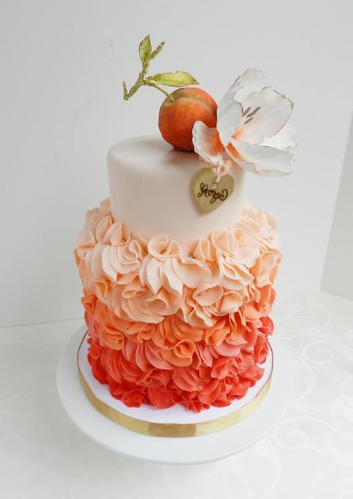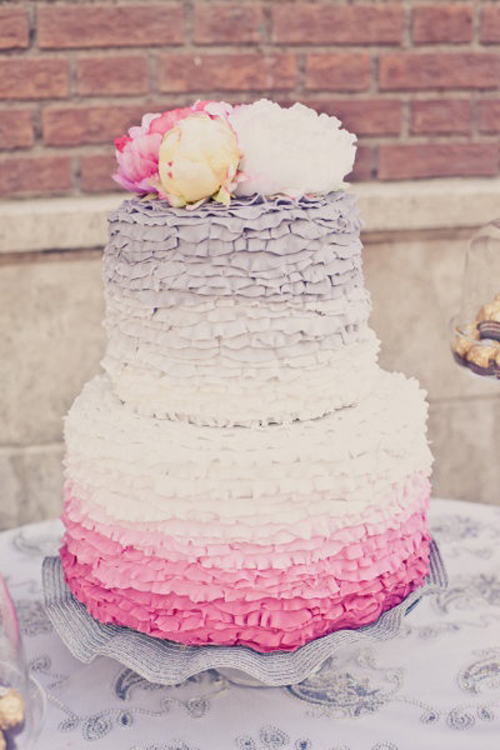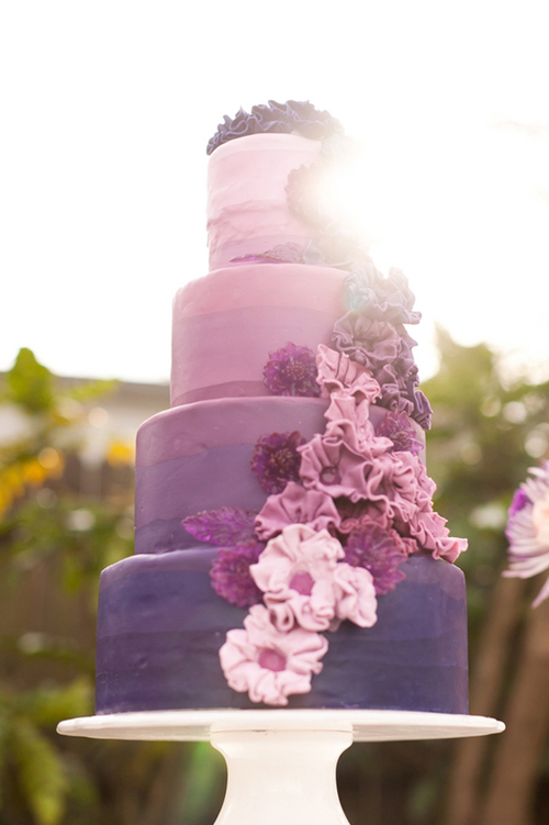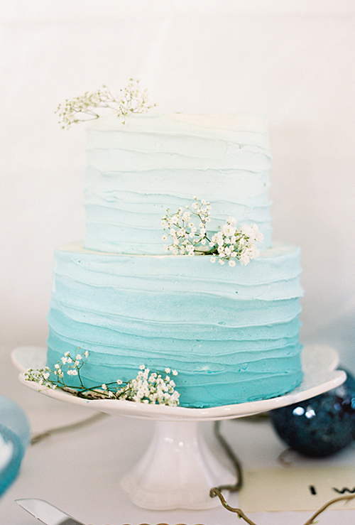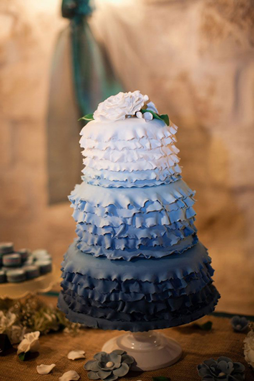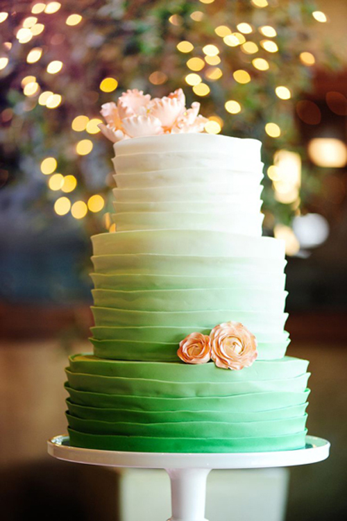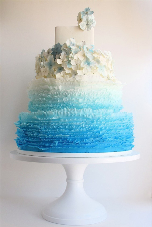 Màu ombre hay còn gọi là tông màu đổ, được biết đến từ năm 2012, nhưng đến nay vẫn là thiết kế đẹp để trang trí bánh cưới.