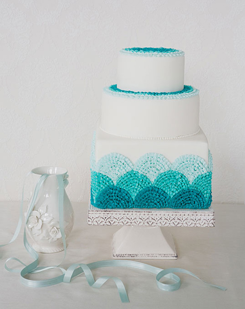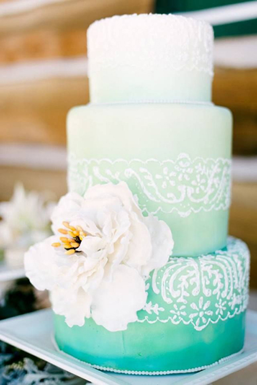 Với đám cưới mùa hè, cô dâu chú rể có thể chọn chiếc bánh tông màu xanh để làm đẹp cho bữa tiệc.