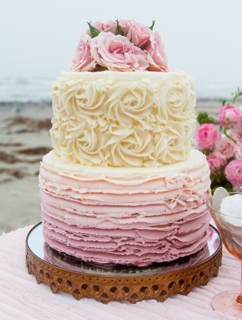 Một chiếc bánh cưới ombre màu hồng sẽ là điểm nhấn nhẹ nhàng, đáng yêu trong đám cưới.