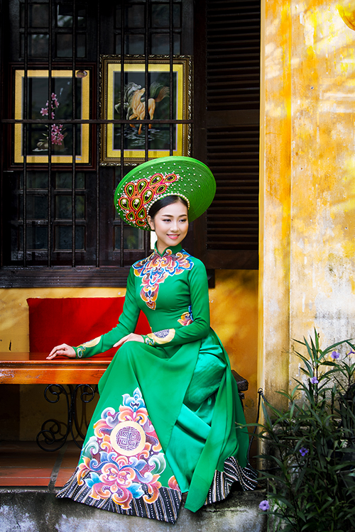 Top 10 Hoa hậu Việt Nam 2016, Người đẹp áo dài Bùi Nữ Kiều Vỹ gợi ý trang phục ngày ăn hỏi, vu quy cho cô dâu mới.