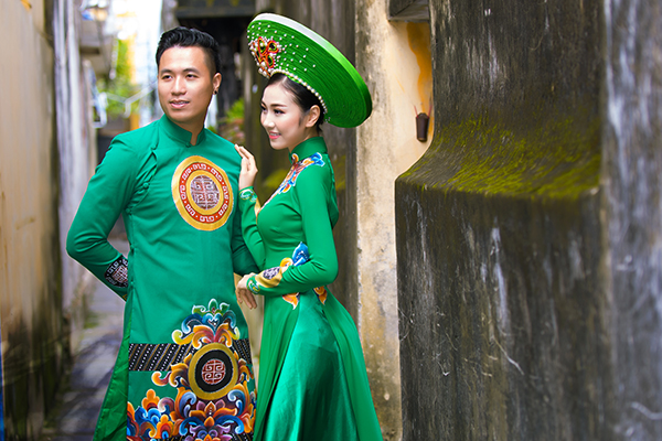Xu hướng chọn áo dài cưới cho các tân lang cũng dần trở nên phổ biến. Áo cho các chàng thường có phom dáng đơn giản, cách tân bằng kiểu vạt ngắn, để thoải mái trong việc di chuyển.