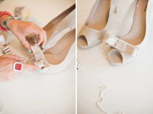 Chỉ với 4 bước đơn giản, bạn đã có được một đôi giầy cưới lung linh theo phong cách đặc trưng của thương hiệu Valentino. Chiếc nơ đính đá không chỉ tạo điểm nhấn cho đôi giầy mà còn giúp bànchân của cô dâu sáng hơn.