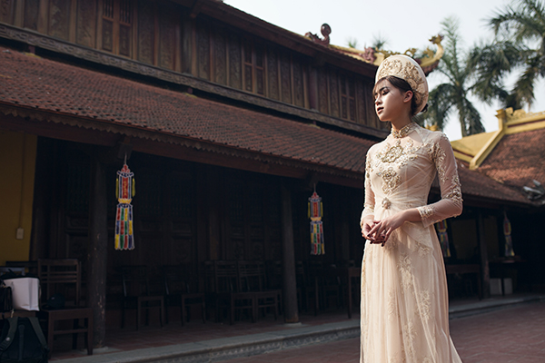 Phong cách trang điểm tự nhiên phù hợp với những mẫu áo dài truyền thống.