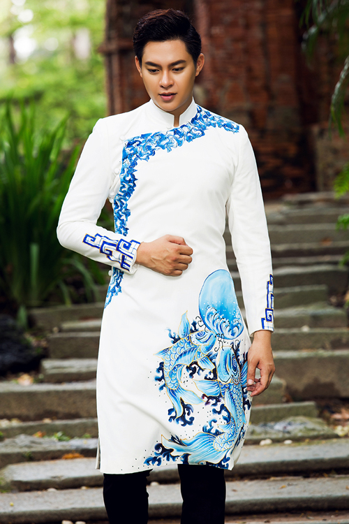 Áo dài chú rể thường không trang trí quá nhiều họa thiết mà chỉ tập trung vào thân trước để thể hiện sự nam tính của người mặc.