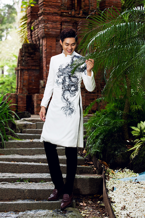 Xu hướng chọn áo dài cưới cho tân lang đang ngày càng phổ biến, nhất là trong các nghi thức gia tiên truyền thống. Áo cho các chàng thường có phom dáng đơn giản, cách tân bằng kiểu vạt ngắn để thoải mái trong việc di chuyển.