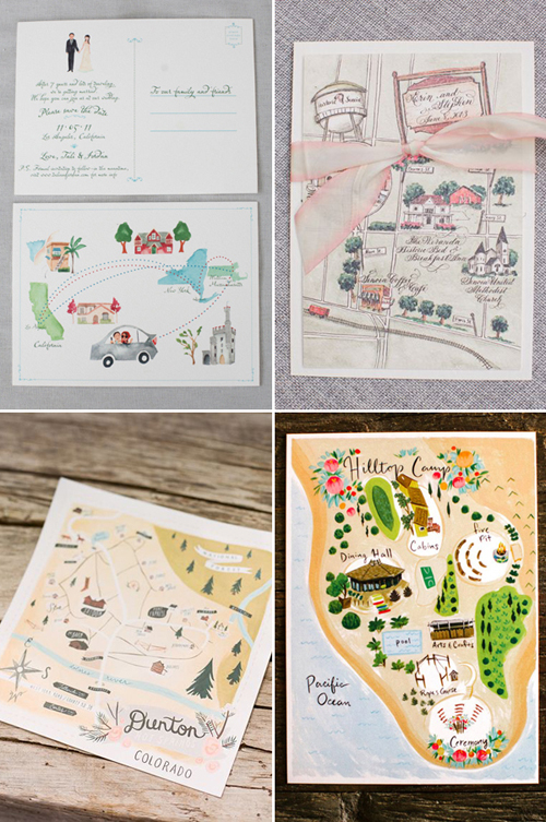 Mẫu thiệp in sẵn bản đồ chỉ đường tới nơi tổ chức tiệc cưới được yêu thích trong mùa cưới 2016. Bản đồ được vẽ cách điệu theo phong cách hoạt hình mới lạ mang đến sự vui nhộn, trẻ trung, gần gũi cho tấm thiệp mời.