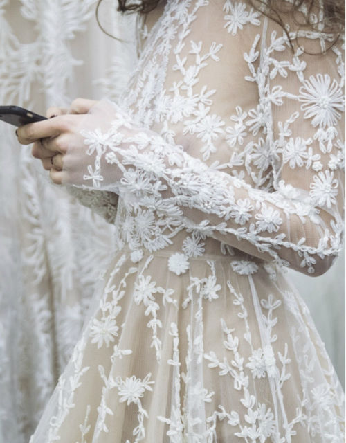 Phần tay cầu kỳ như loe rộng, phủ ren xuyên thấu hay xếp tầng được các nhà thiết kế tận dụng để làm điệu cho những mẫu soiree mới nhất. Chi tiết này tuy nhỏ nhưng tạo điểm nhấn đặc biệt, giúp cô dâu thêm nổi bật khi mặc váy cưới.