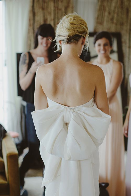 Trong bất cứ mùa cưới nào, chiếc nơ trên váy cưới luôn mang lại nét đáng yêu cho cô dâu. Trên sàn diễn New York Bridal Fashion Week 2016, chi tiết nơ không chỉ gói gọn với kích thước nhỏ xinh thường thấy mà to bản, nổi bật hơn hẳn.