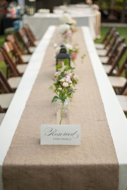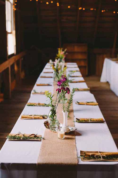 Đây là loại khăn trải bàn dành cho những đám cưới mang phong cách đồng quê. Những mảnh vải thô, rám sẽ khiến bàn tiệc trong đám cưới của bạn ấn tượng, giống như bữa tiệc mộc mạc được tổ chức ở thôn quê.