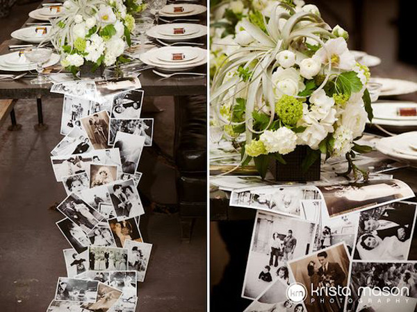 Một chiếc khăn trải bàn handmade được ghép từ những bức ảnh của vợ chồng, gia đình bạn sẽ để lại ấn tượng sâu sắc trong lòng các khách mời. Ngoài ra, bạn cũng có thể tham khảo nhiều ý tưởng làm khăn trải bàn handmade khác như cắt ghép những bông hoa, chiếc lá trang trí.