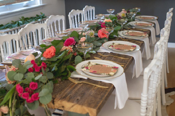 Những cô dâu chú rể yêu thích thiên nhiên chắc hẳn sẽ rất thích thú với kiểu khăn trải bàn này. Những cành hoa được kết vào nhau, trải dài dọc theo bàn tiệc chắc hẳn sẽ khiến thực khách vô cùng thích thú. Kiểu khăn trải bàn này đặc biệt phù hợp với những bữa tiệc ngoài trời.