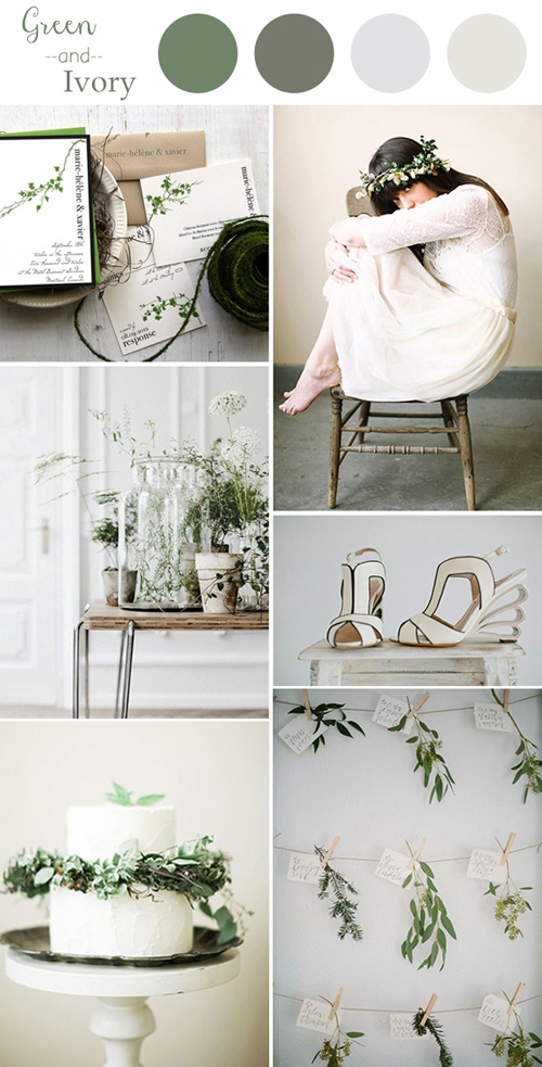 Với những đám cưới được tổ chức ngoài trời thì xanh lá cây và màu trắng ngà là lựa chọn thích hợp hơn cả. Trong khi màu xanh gợi sự liên tưởng gần gũi với thiên nhiên và thể hiện sự sinh sôi, nảy nở thì màu ngà giúp không gian tiệc cưới trầm ấm hơn. Với sự kết hợp này, cô dâu chú rể nên để màu ngà làm chủ đạo và nhấn nhá bằng những họa tiết trang trí màu xanh lá cây.