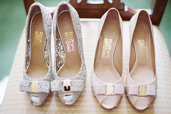 Mẫu giầy cưới hở mũi thanh lịch, trẻ trung của thương hiệu Salvatore Ferragamo với chiếc nơ vải huyền thoại được gắn ở mũi giầy.