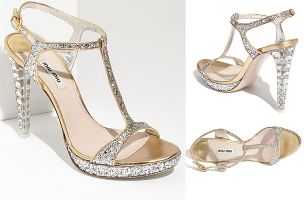 Mẫu thiết kế hiện đại, tiểu thư của Miu Miu có thể 'đốn tim' bất cứ tín đồ thời trang. Giầy cưới của Miu Miu được gắn nhiều đá lấp lánh, tạo hiệu ứng bắt sáng đặc biệt.