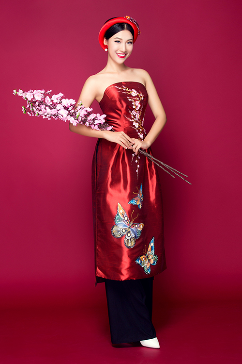Dựa trên phom dáng của áo dài truyền thống, nhà thiết kế đã sáng tạo và biến tấu thành những trang phục mới mẻ.