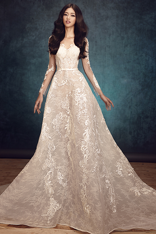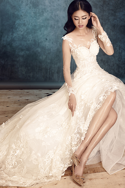 Những bộ váy cưới lộng lẫy cũng góp phần giúp người đẹp khoe được chiều cao ấn tượng 180 cm cùng đôi chân dài miên man.