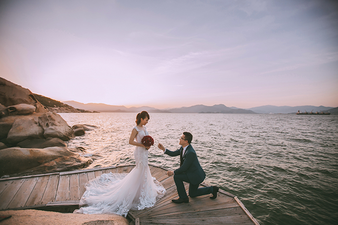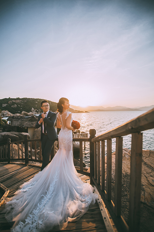 Để chuẩn bị cho đám cưới diễn ra ngày 13/6, cặp đôi đã chọn bãi biển Nha Trang và thành phố cổ Hội An để thực hiện bộ ảnh cho ngày trọng đại.