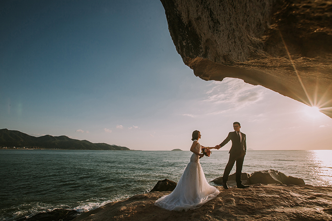 “Chụp ảnh cưới không mệt và vất vả như mình tưởng tượng. Bọn mình coi đây là một cơ hội để đi du lịch cùng nhau, cùng tận hưởng những giây phút từ ‘cực sến’ đến cực nhắng nhít”, cô dâu hạnh phúc nói.