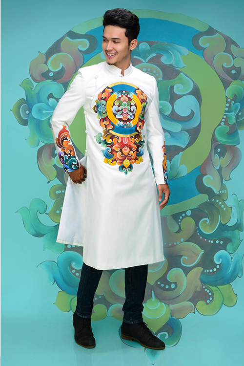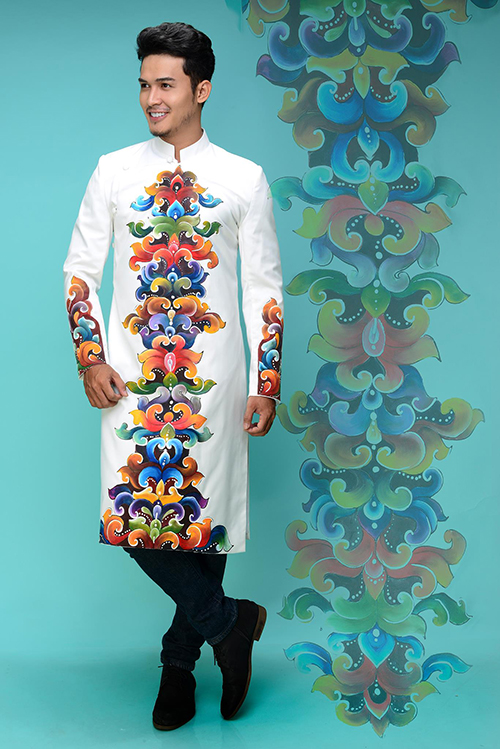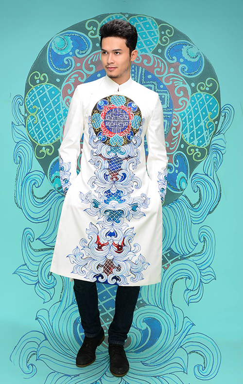 Cách tạo họa tiết ấn tượng trên áo dài cưới mang đến phong cách mới mẻ mà gợi nhớ nét truyền thống trong trang phục cưới của các chàng.