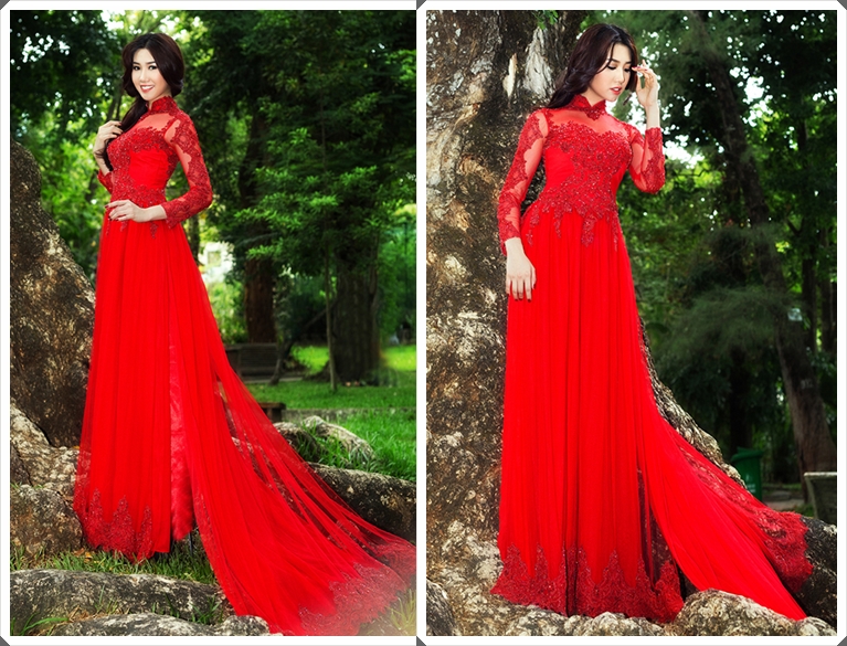 Màu đỏ là lựa chọn hàng đầu của hầu hết các cô dâu Việt khi chọn áo dài đám cưới hay đám hỏi