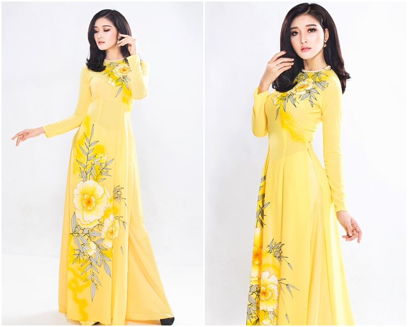 Dù là phong cách truyền thống hay hiện đại, màu sắc áo dài vẫn thường là hồng cánh sen, đỏ, hồng phấn, trắng, vàng… Có thể kết hợp áo dài với chiếc quần cùng màu hoặc màu đối lập hoàn toàn để tạo sự nổi bật.