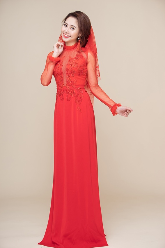 Màu đỏ luôn được cô dâu ưu ái lựa chọn bởi sự nổi bật và mang ý nghĩa cuộc sống hôn nhân luôn gặp nhiều may mắn.